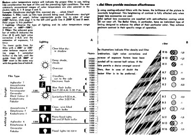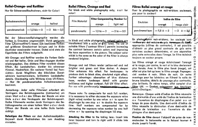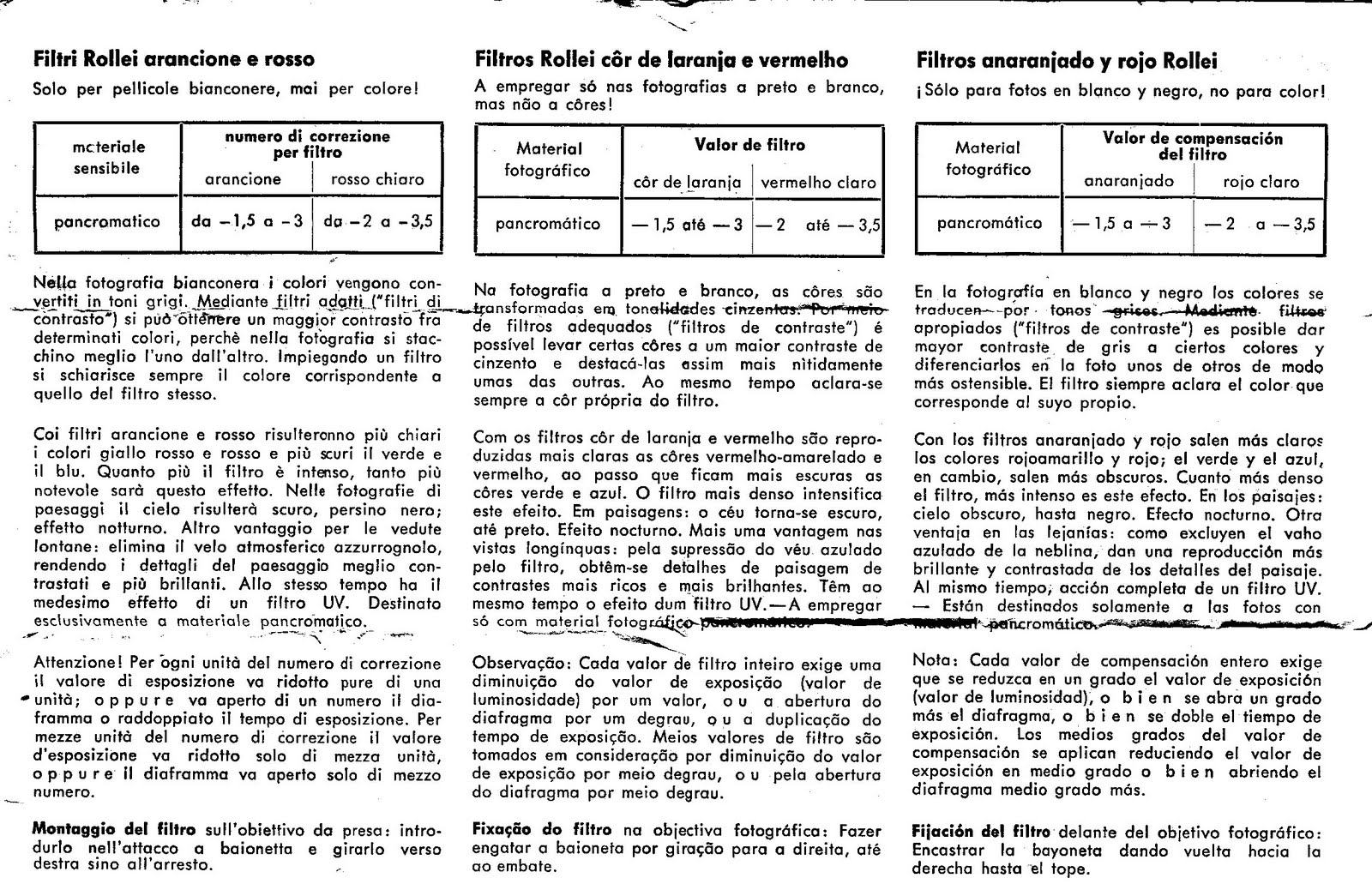 The table above explains the scale and system used for the colour filters effect and filters power and mentions each filter available for the regular three TLR cameras bayonet with the commercial code, the WA Rolleiflex B IV is not included (click on thumbnail)