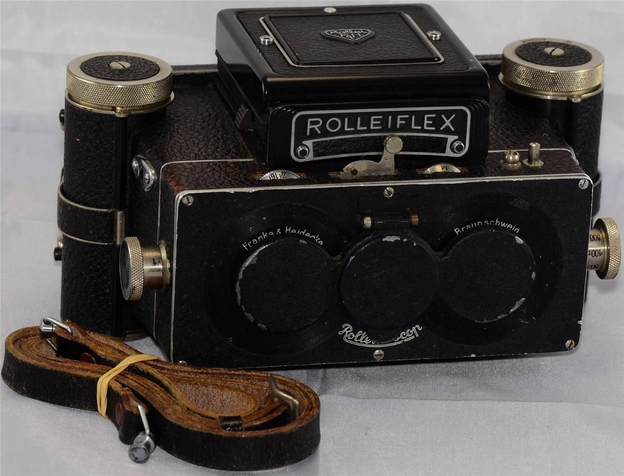 This model was produced between 1926-1941. Originally for 117 roll film and has been converted to 120 film. Finder has also been converted to a more modern day one that can accept a Rolleiflex prism. A very rare and hard to find older stereo model Rollei.